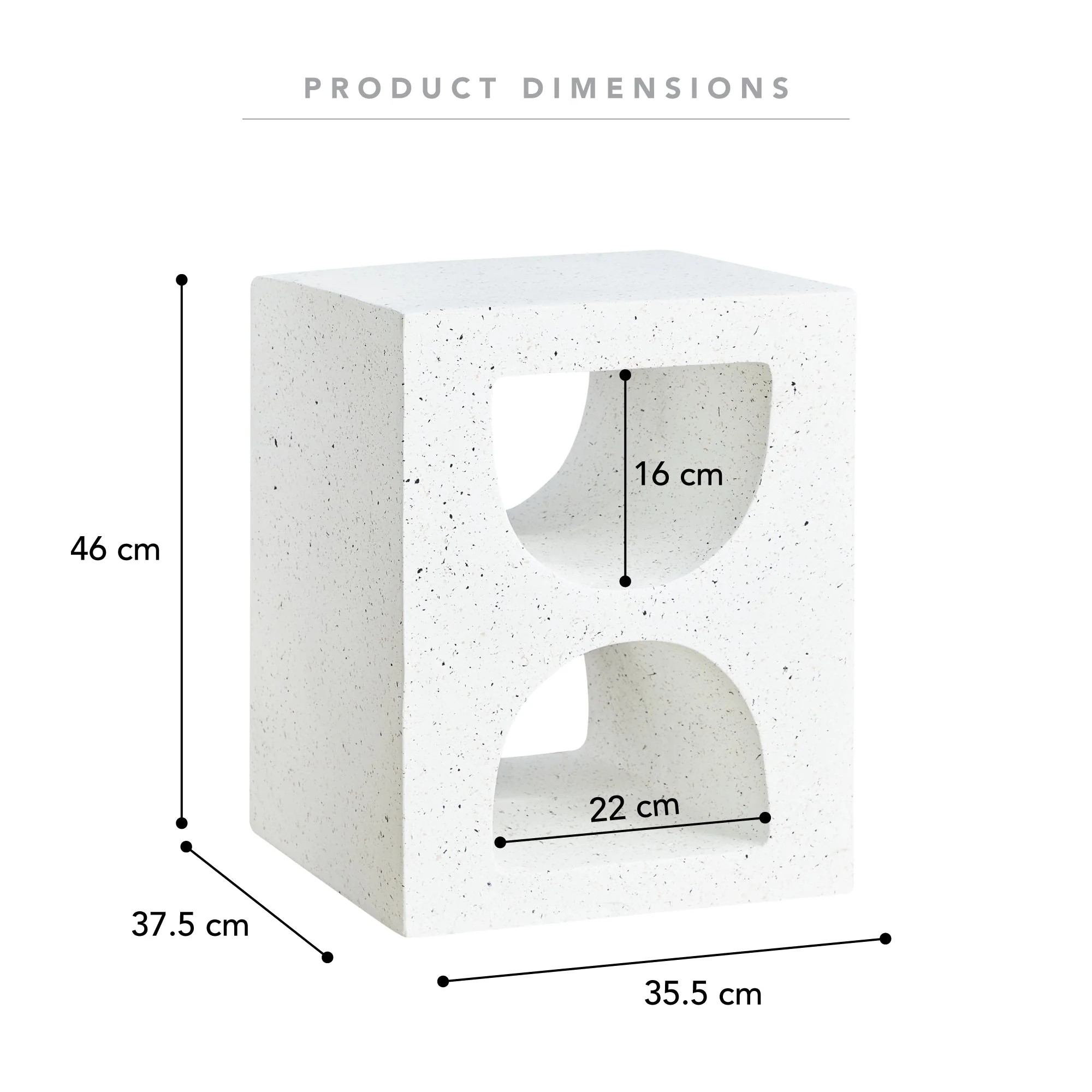 The Cooper & Co. Brasilia 35.5cm MgO Side Table White features a contemporary design with a textured white finish accented by subtle black speckles. This distinctive look adds character and depth, making it a stylish addition to living rooms, bedrooms, or entryways while effortlessly complementing various interior styles.