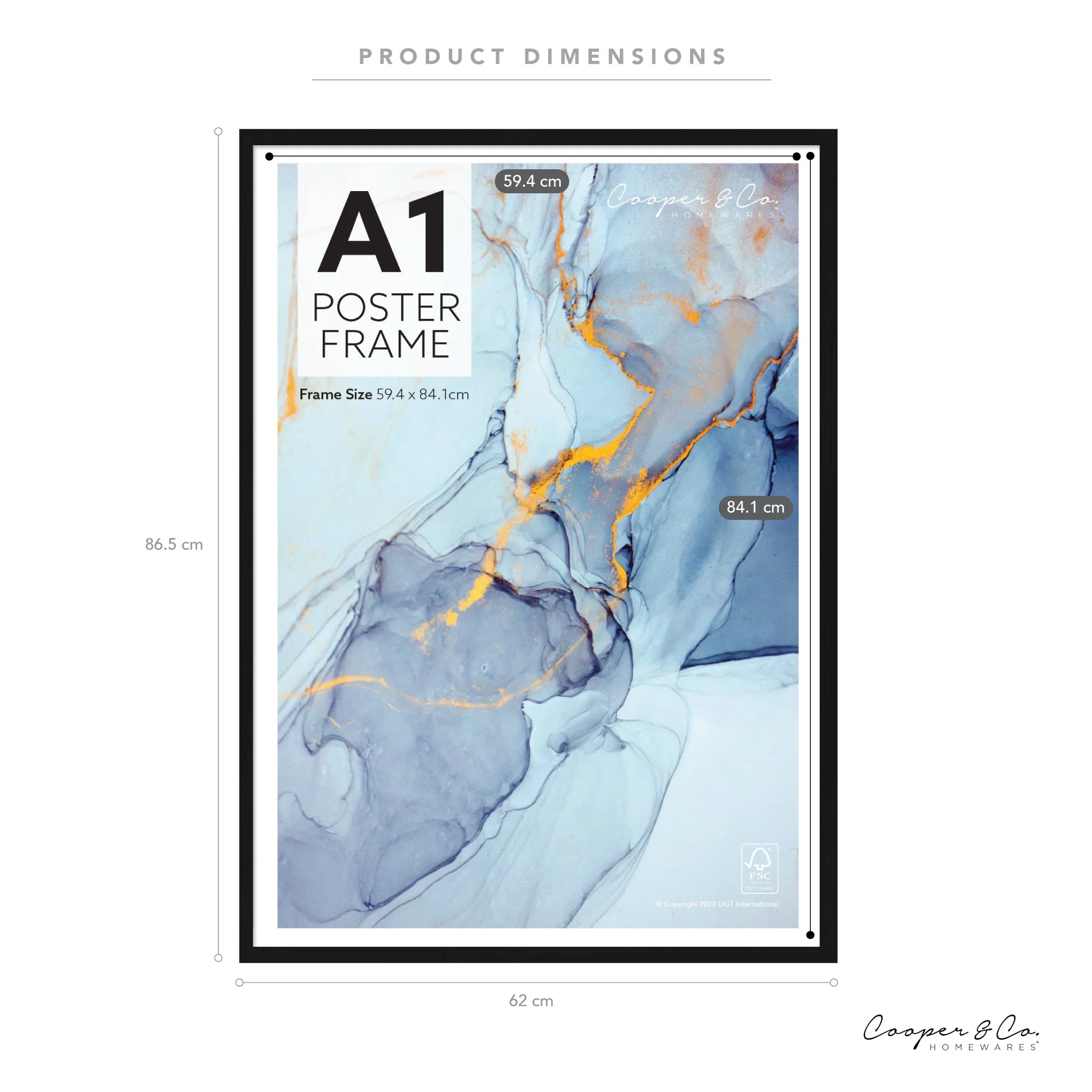 - Fits prints A1 (594 x 841mm)