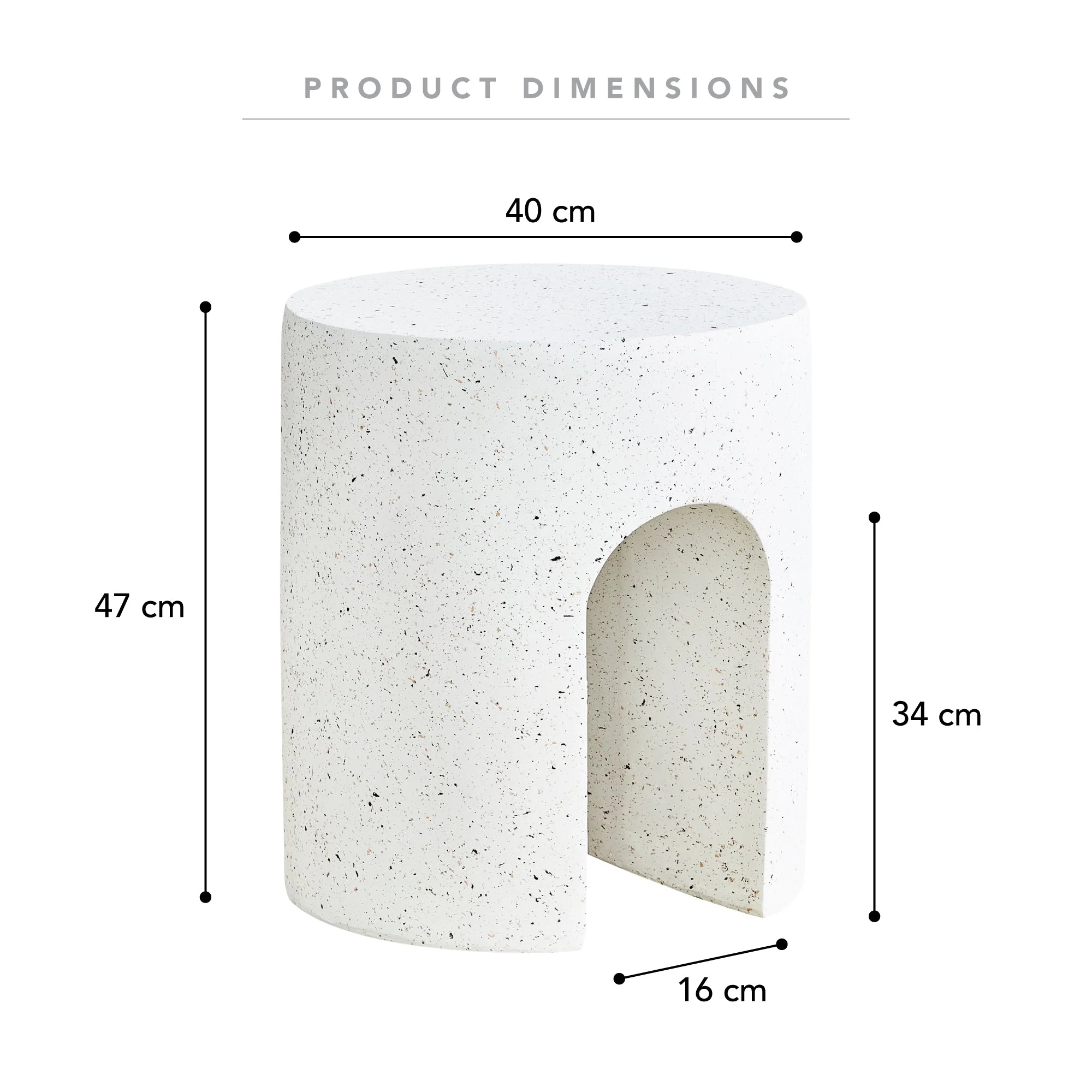 With dimensions of 47cm in height, and 40cm in width, this piece is a versatile gem. Whether you use it as extra seating, a chic side table, or even as a decorative statement piece, its MgO construction ensures it stands out both in style and substance. Moreover, Magnesium Oxide (MgO) is renowned for its eco-friendly properties, fire resistance, and mold prevention capabilities, ensuring that your side table not only looks good but also stands up to the test of time in various conditions.